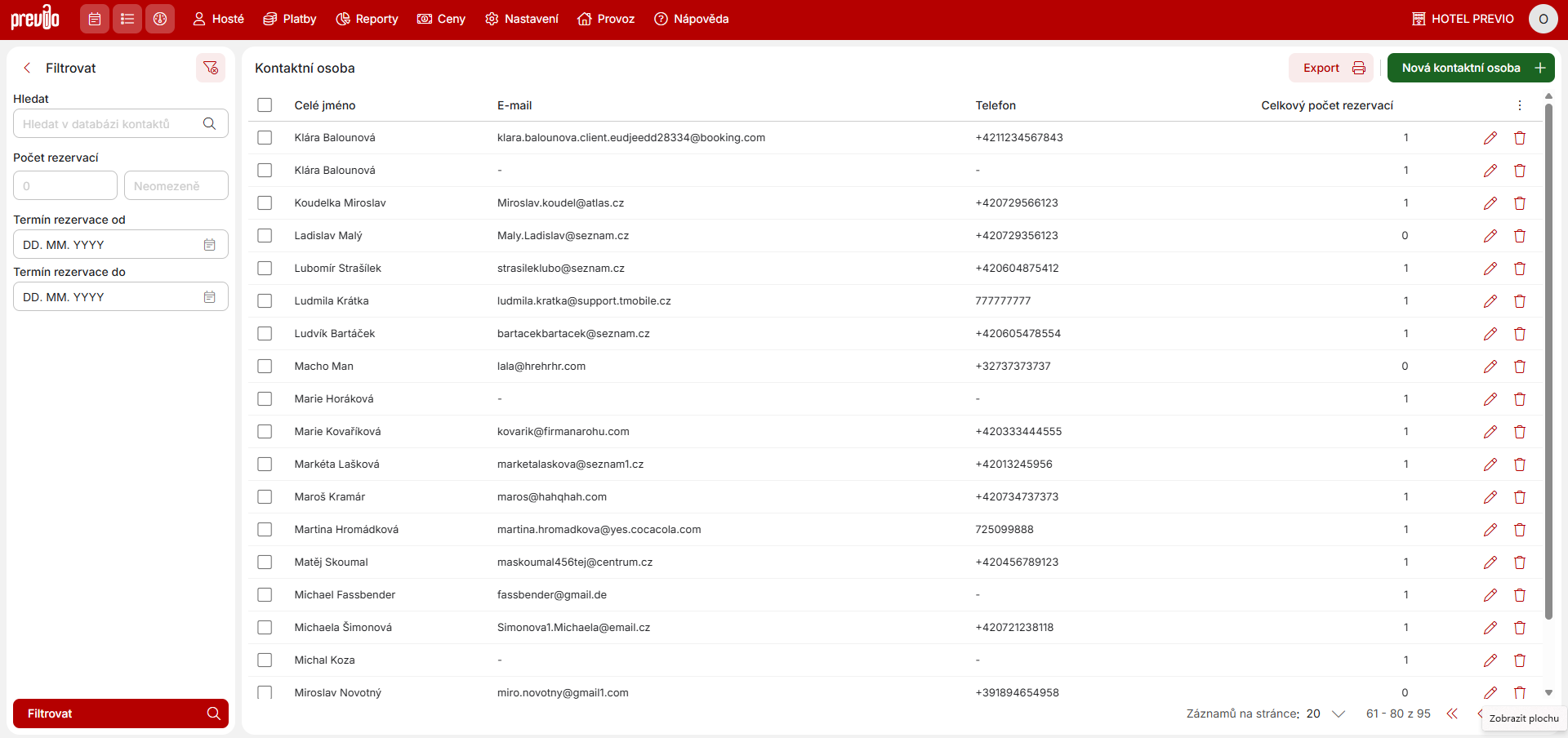 Kontaktní osoby z obou uvedených příkladů pak naleznete vypsané v modulu Kontaktní osoby. Ten funguje na velice podobném principu jako databáze hostů.