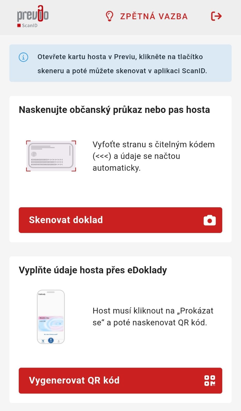 - Přihlaste se do Previa a pod stejným uživatelským účtem se přihlaste i do aplikace ScanID na adrese https://scanid.previo.app/.