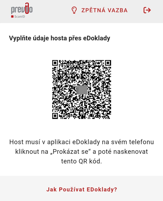 - Host následně ve své aplikaci eDoklady zvolí možnost „prokázat se“ a naskenuje vámi vygenerovaný QR kód a potvrdí předání údajů, které jsou potřebné pro check-in.