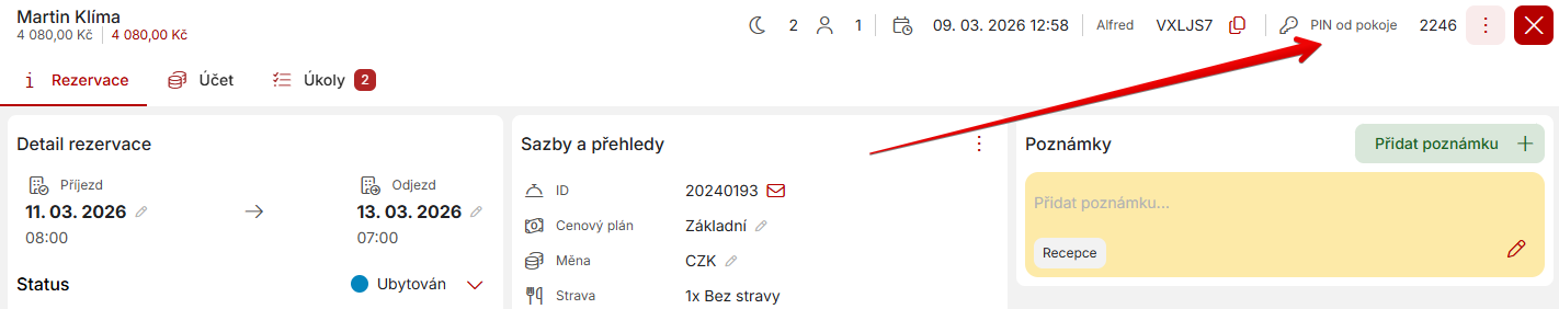 - Zrušit všechny aktivní klíče u rezervace a vystavit nový