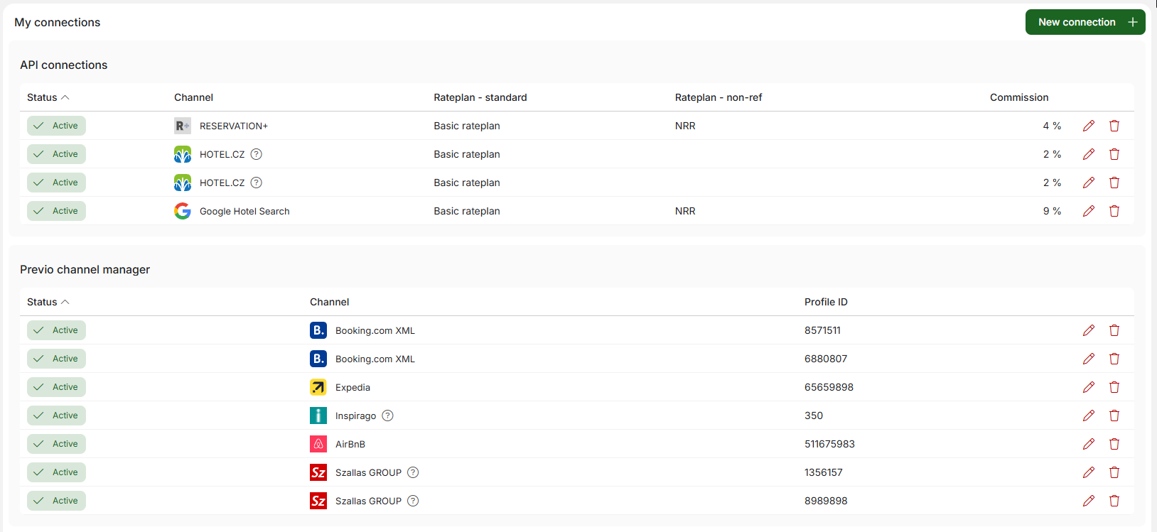 If, for any reason, you want to terminate your cooperation with a particular booking portal, you can send us a request to cancel the connection directly from the My Connections module by clicking on the trash can icon for the partner in question.
