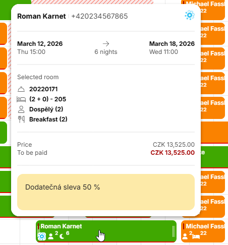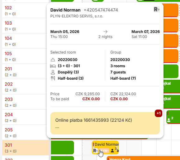 When you hover your mouse over a reservation, a quick preview will always appear, where you can get basic information about the reservation without having to click on it.