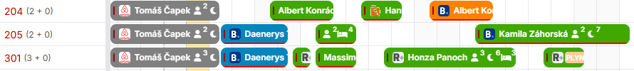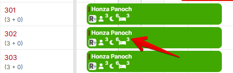 - Information about check-in completion (a red vertical line before the name indicates that the reservation has not yet been fully checked in. If the check-in is complete, nothing is displayed before the name).