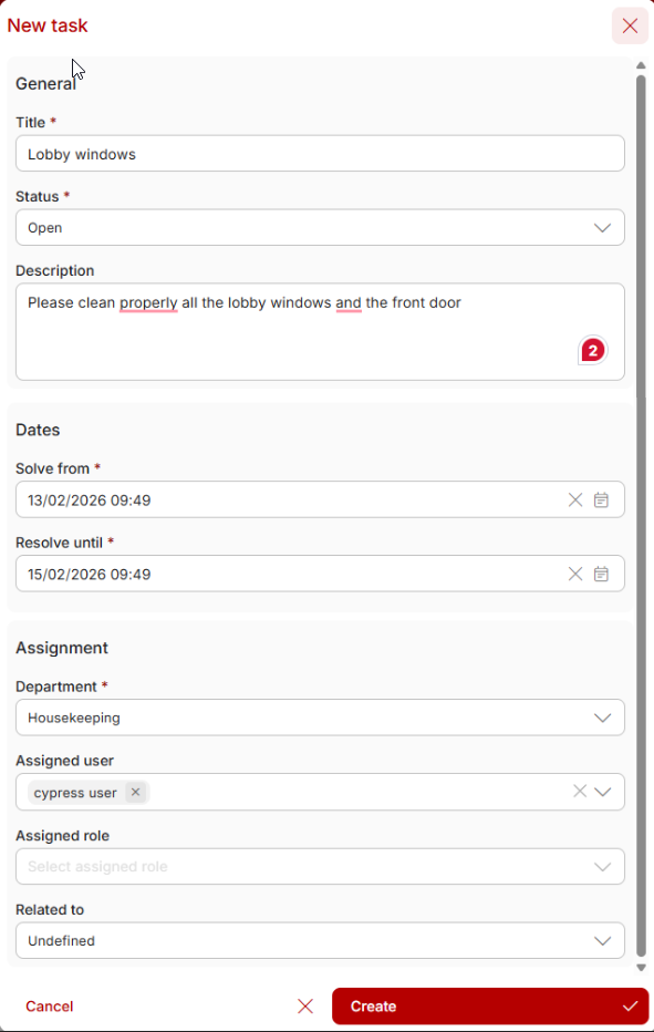 - Resolve until – deadline for solving the task