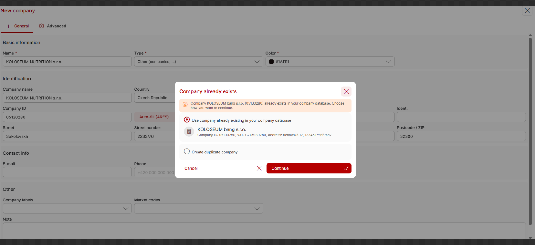 - #44404 – Added a warning about creating a duplicate company record upon saving.
