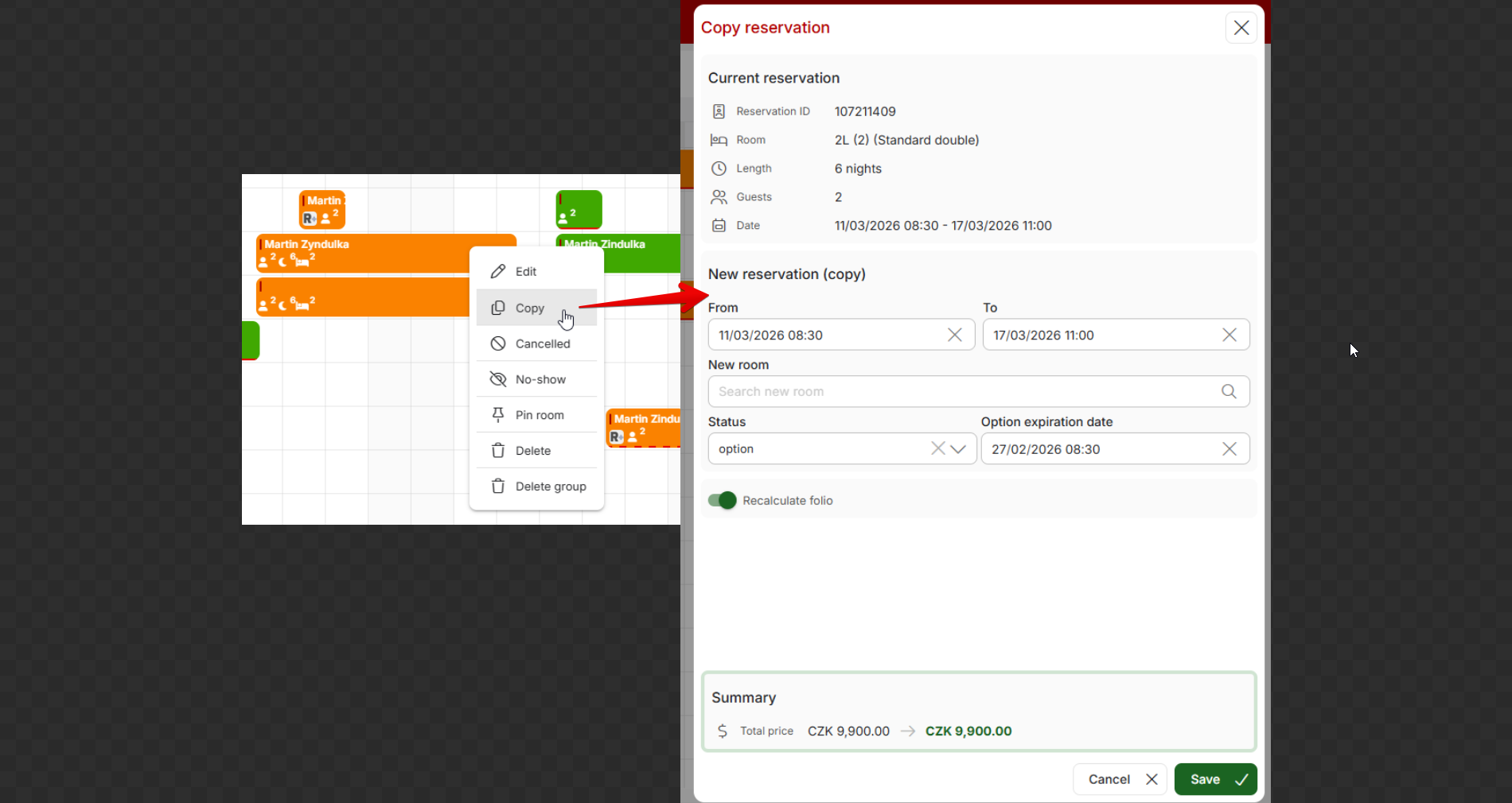 - #44045 – Copy reservation function added to right mouse button from calendar.