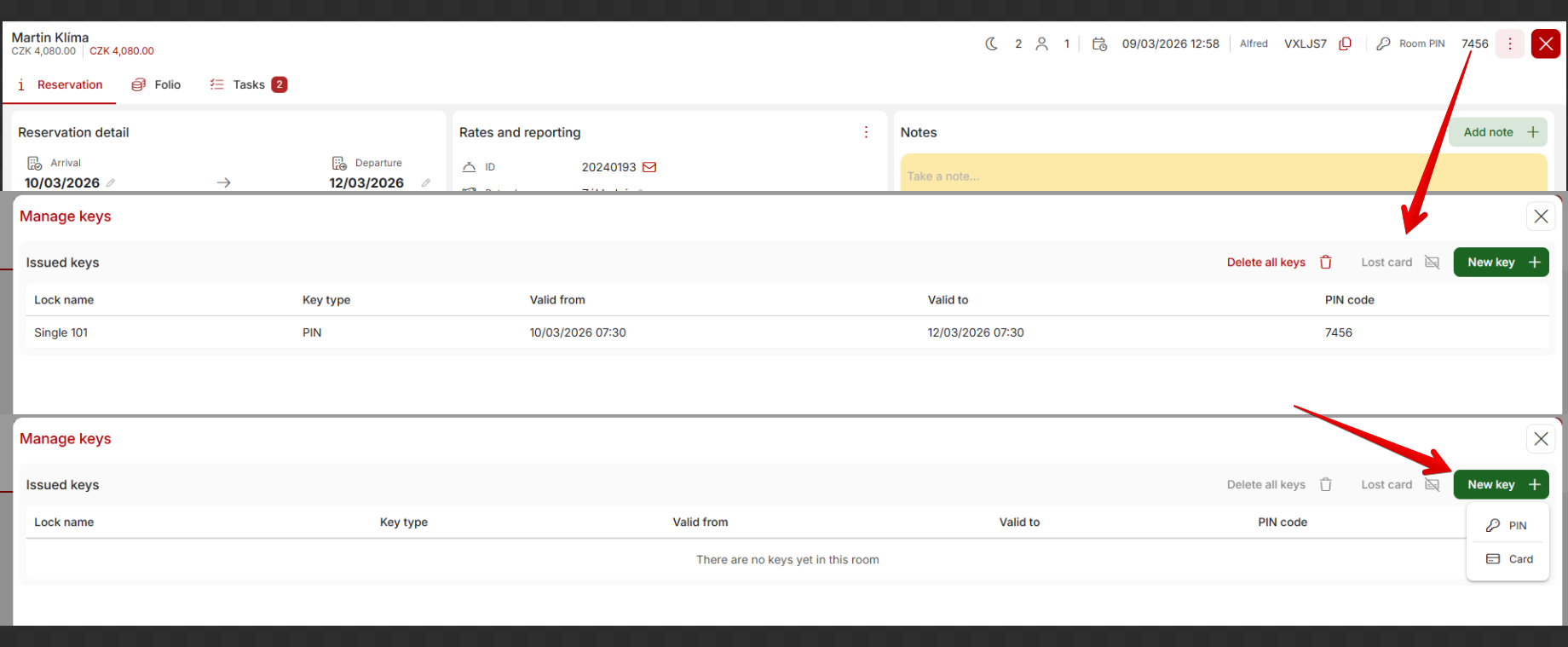 - #51287 – Keys and pin codes can be issued directly from reservation detail.