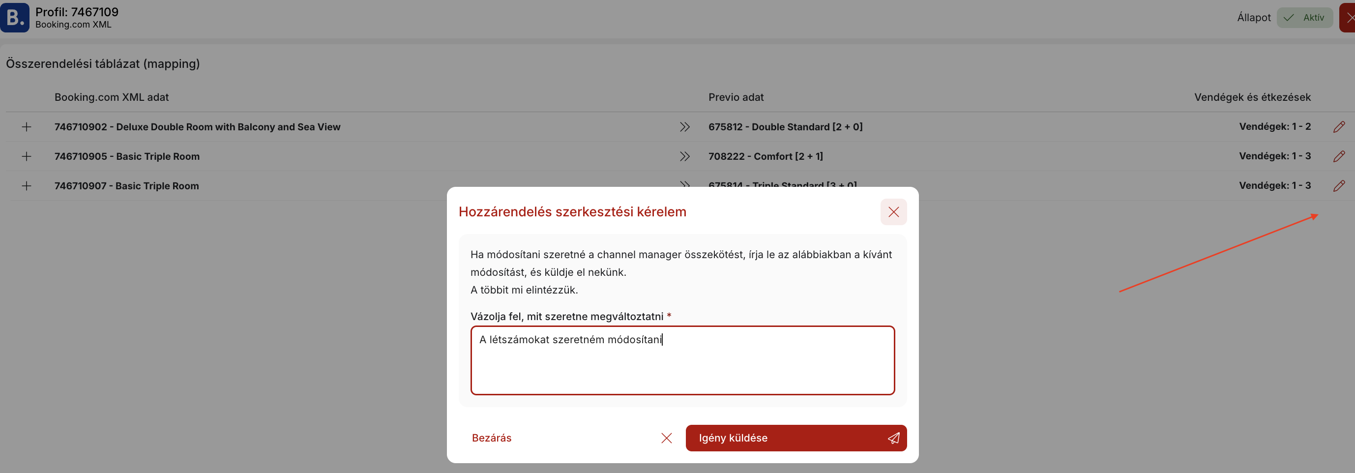 Minden egyes mapping sor mellett található egy ceruza ikon, amelynek segítségével módosítást kérhetünk, az adott összerendeléshez. Ez azt jelenti, hogy ha bármilyen módosítást kell végrehajtani a kapcsolaton, közvetlenül üzenetet küldhet support csapatunknak, akik így az információ birtokában keresik majd.