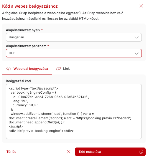 - Az űrlap megjelenítéséhez és működtetéséhez szükséges paramétereket nem kell manuálisan beírni a weboldalba beillesztendő kódba. Egyszerűen végigkatintjuk a beállítási felületet, majd megtekinthetjük az eredményül kapott RESERVATION+ megjelenítést, amelyet szükség még tovább formázhatunk.