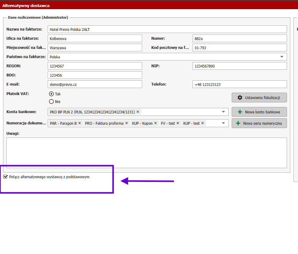 1. Ustaw alternatywnego dostawcę w Previo: