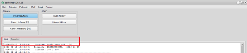 Większość naszych klientów ma już zainstalowany program bsxPrinter, ponieważ służy on również do fiskalizacji paragonów. Mimo to należy sprawdzić, czy po uruchomieniu aplikacji w zakładce Logi widoczna jest aktualna wersja oprogramowania: