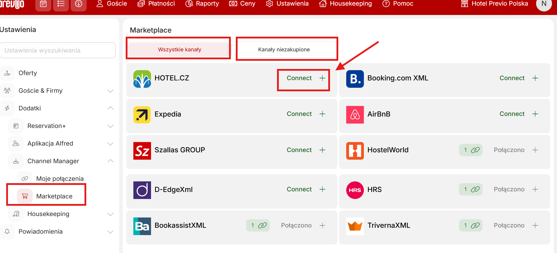 Kanały niezakupione – lista kanałów dystrybucji, które jeszcze nie zostały połączone.